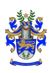 V modrém štítě zlatý kráčející lev nad stříbrnou skálou s přivrácenými a dole překříženými zelenými olivovými ratolestmi bez plodů, provázenou po stranách dvěma zlatými hvězdami. Na štítě kolčí přilba se zlato-modrou točenicí a modro-zlatými přikrývadly. Klenotem je zlatá hvězda mezi přivrácenými zelenými olivovými ratolestmi bez plodů. Pod štítem modrá páska se zlatou podšívkou a stříbrným heslem SEMPER MUNDUS · SEMPER DIRECTUS.
